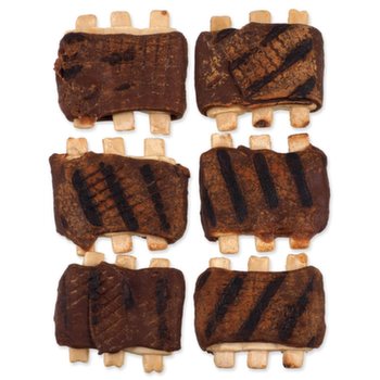 Rebierka z dentálnej sušienky 50%, kukuričný škrob 25%, bravčové mäso 11,5%, rastlinná bielkovina 5%, pšeničná múka 3%, glycerín 3%, rastlinný olej 2%, soľ 0,4%, sorbát draselný .