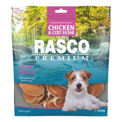 Zloženie: kuracie mäso 87%, mäso z tresky 10%, kukuričný škrob 2%, glycerín 1%.