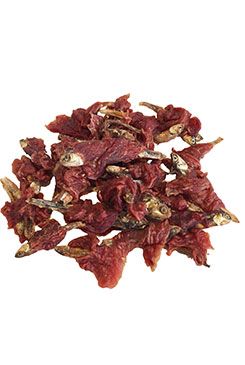 Zloženie: 80% kačica, 9,5% ryba, 2,8% škrob, 4,3% glycerín, 3,4% rast, 1% hrubá vláknina, 16% vlhkosť.