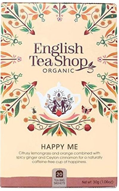 Čaj Pocit štěstí od značky English Tea Shop v bio kvalitě má bylinkovo-ovocnou chuť a kořeněné aroma. Díky obsahu bylinek vám navodí dobrou náladu a je zcela bez kofeinu. Je vhodný i pro chvíli relaxace a odpočinku.