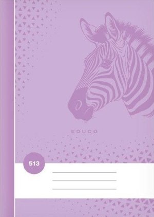 Školský linajkový zošit vo formáte A5, vo fialovej farbe, s motívom zebry, v doskách z kriedového papiera. Typ: 513 Formát: A5 Motív: zebra Farba: fialová …