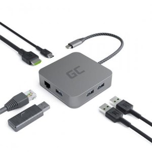 Green Cell USB-C HUB 6v1 (USB 3.0 HDMI Ethernet USB-C) adaptér pre Apple MacBook, Dell XPS, Asus ZenBook a ďalšie Ešte viac možností s adaptérom GC HUB2.