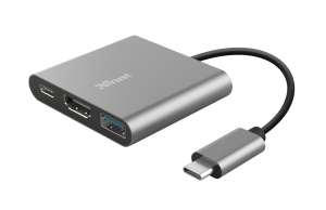 Adaptér Trust Dalyx 3v1 USB-C Pripojenie cez USB-C HDMI výstup s podporou 4K pri 30 Hz USB-A port s rýchlosťou až 5 Gbps USB-C port s Power Delivery až 100 W Hliníkové telo Dĺžka kábla 10 cm Farba: šedá …