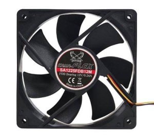 Skvelý SCYTHE ventilátor s rozmermi 120x120x17mm s otáčkami riadenými PWM od 300 (± 200) ~ 1800rpm (± 10%) a špeciálnymi Sealed Precision FDB ložiskami so MTBF 120,000 hodín (pri 25°C) Model 2
