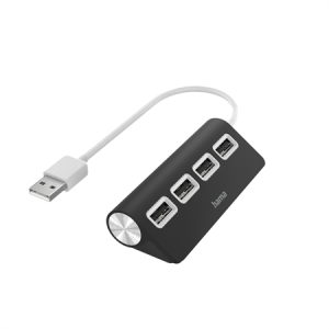 4-port USB Hub USB 2.0 - vysokorýchlostný prenos dát do 480 Mbps Practical integrated USB cable Špecifikácia Interface: 4 x USB 2.0, Max 480 mbps Power: 5 VDC±10%, až 60 ma Material: plastic Dimensions