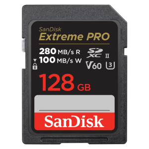 SanDisk Extreme PRO 128GB Kapacita: 128GB FormFactor: SDXC Sekvenčné čítanie: až 280MB/s Sekvenčný zápis: až 100MB/s