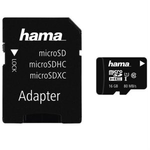 MicroSD pamäťová karta, kapacita 16 GB, maximálna prenosová rýchlosť 80 MB/s, adaptér súčasťou balenia, Class 10, UHS-1.