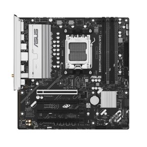 ASUS B850 MAX GAMING WIFI Form Factor: mATX Form Factor (24.4 cm x 24.4 cm) CPU: AMD Socket AM5 pre desktopové procesory AMD Ryzen 9000, 8000 a 7000 Series Chipset: AMD B850 Chipset Pamäť