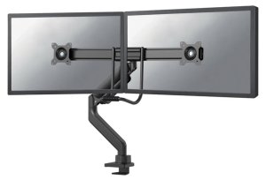 Neomounts DS75-450BL2; Flexibilný stolný VESA držiak pre 2 ploché monitory o veľkosti 17 "-32" a maximálnej nosnosti do 16 kg (2× 8 kg) .