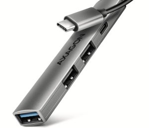 Tenký hliníkový USB-C 5Gbps AXAGON HUE-STC ALU STRIP húb ľahko a rýchlo pripojí k notebooku, počítaču alebo telefónu až štyri USB zariadenia súčasne.