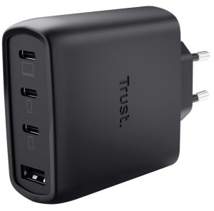 Trust Maxo 65W 4portová GaN USB nabíjačka čierna Praktická 4portová 65W GaN USB nabíjačka pre nabíjanie štyroch zariadení naraz Špecifikácia: Materiál: ABS/PC Kábel: 2m USB-C nabíjací kábel Hmotnosť nabíjačky: …