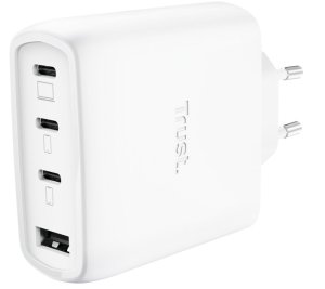 Trust Maxo 65W 4portová GaN USB nabíjačka biela Praktická 4portová 65W GaN USB nabíjačka pre nabíjanie štyroch zariadení naraz Špecifikácia: Materiál: ABS/PC Kábel: 2m USB-C nabíjací kábel Hmotnosť nabíjačky: …