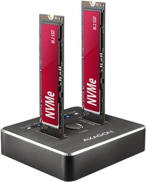 Externá dokovacia stanica Axagon ADSA-M2C pre M.2 NVMe SSD disky s funkciou klonovania, pomôže vám ľahko a rýchlo pripojiť až dva ľubovoľné M.2 NVMe SSD disky k počítaču, M.2 karty stačí len zasunúť do …