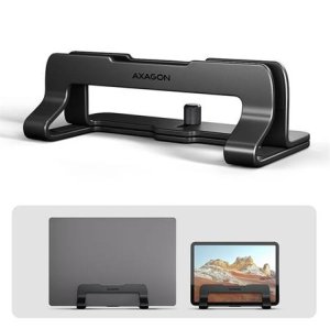 AXAGON STND-VB je elegantný a praktický stojan na notebook či tablet, ktorý umožňuje vertikálne vloženie zariadenia a vnáša do pracovného priestoru poriadok a viac voľného miesta.