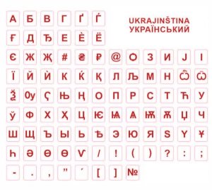 Ukrajinská prelepka na klávesnici - červená *Červená farba písma a priehľadné pozadie prelepov *Prelepka vhodná na nalepenie na svetlú klávesnicu s čiernym písmom *Azbuka s kompletnou sadou znakov používanou …