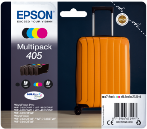 Originálny cartridge Epson 405 Farba: Multipack, farba čierna/azúrová/purpurová/žltá (black/cyan/magenta/yellow) Výťažnosť: čierna 350 strán, farby 300 strán Obsah? čierna 7,6 ml, farby 5,4 ml Pre tlačiarne: …