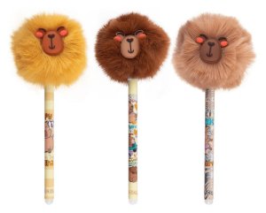 Gumovateľné perá s huňatým viečkom v tvare roztomilej kapybary, ktoré je radosť pohladiť.