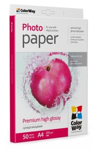 ColorWay Premium High Glossy A4 50 ks; Prémiový lesklý fotopapier formátu A4 pre atramentové tlačiarne.