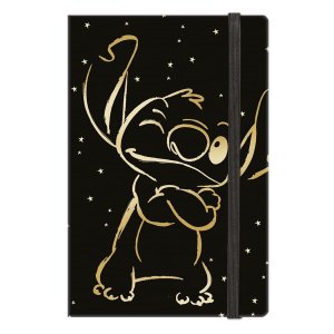 Zápisník v pevných doskách, s fixačnou plochou gumičkou.