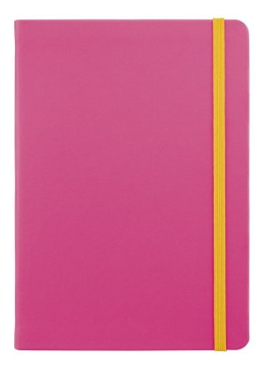 Dizajnový zápisník v ružovej farbe doplnený elegantne ladenou žltou uzatvárateľnou gumičkou nesmie chýbať tam, kde si treba niečo poznamenať alebo nakresliť!