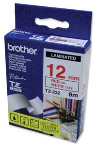 Originálna kazeta s páskou Brother TZe-232 - červená tlač na biele, šírka 12 mm Originálna kazeta s laminovanou páskou TZe-232 kompatibilná so širokým radom tlačiarní Brother P-touch je obzvlášť všestranná …