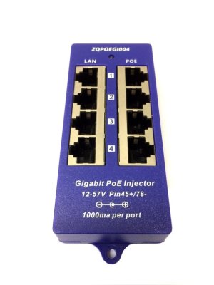 Panel integrujúci štyri gigabitové pasívne POE injektory s napájacím rozsahom 12-57V a max. prúdom 1000mA/port.