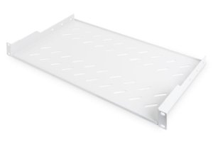Rackmount 19" fixed shelf 1U, Vented, Grey Color RAL 7035, up to 15kg, 483x250x44mm • Stable sheet steel shelf in light grey (RAL 7035)