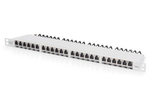 CAT 6A Class EA patch panel, shielded 0.5U, 24-port RJ45, incl. dust cover, 8P8C, farba šedá RAL 7035