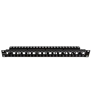 DIGITUS Modular Patch Panel, shielded 24-port, Blank, 1U, Rack Mount, farebný čierny transparent štítok Description Modular Patch Panel pre Keystone Jack 1U Rack Mount - Unloaded DIGITUS® modular …