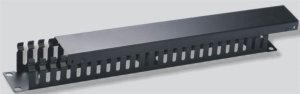 19" vyväzovací panel 1U jednostr.plast.lišta (BK) / priech.plech Vyväzovací panel je plne univerzálny, tj použiteľný pre všetky typy 19" rozvádzačov.