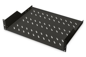 DIGITUS 19" 2U rack mount fixed shelf Vented, Color black RAL 9005, 370x88mm Up to 20kg To store non 19" system components.