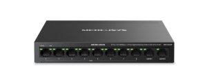 8portový 10/100 Mb/s + 2portový gigabitový stolný prepínač s 8 portami PoE+ 10 portov: 8× 10/100 Mb/s PoE+ portov + 2× gigabitové porty bez PoE.