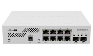 8portový Gigabitový switch Mikrotik, 2 SFP+ sloty so spätnou kompatibilitou s SFP modulmi, operačný systém SwOS, bez ventilátora, prevedenie desktop/rackmount, možnosť uchytenia do 19" racku.