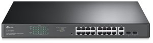 TP-Link TL-SL1218P 16-Port 10/100Mbps + 2-Port Gigabit Rackmount Switch s 16-Port PoE+.