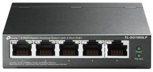 Popis produktu TP-Link PoE Switch TL-SG1005LP je nemanagovateľný Gigabitový PoE Switch s 5x 10/100/1000Mbps z čoho 4 porty podporujú PoE-Out so štandardom 802.3af/at (až 30W/port).