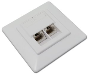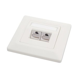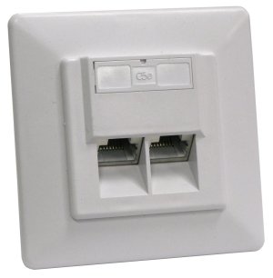 Modular Wall Outlet, CAT5E, fully Shielded 2 X Shielded RJ45 Socket, 8P8C, LSA Flush Mount, purpurový biely