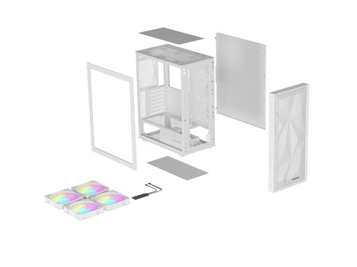 Typ skrine: Midi Tower Formát základnej dosky: ATX Micro-ATX Mini-ITX Kompatibilný štandardný napájací zdroj: ATX Montáž napájacieho zdroja: Spodná časť Maximálna dĺžka zdroja napájania: 215 mm Maximálna výška chladenia CPU: 168 mm Maximálna dĺžka grafickej karty GPU: 351 mm I/O panel: Mini jack x2 USB 3.0 Typ-A x2 USB 3.1 Gen2 Typ-C x1 Typ bočného panelu: Tvrdené sklo Typ predného panelu: Sieťka Počet inštalovaných ventilátorov: 4 Inštalované ventilátory: Predné 3x 120 mm Zadné 1x 120 mm Maximálny počet ventilátorov: 8 Podpora pre inštaláciu ventilátorov - spodná časť: 2x 120 mm Podpora pre inštaláciu ventilátorov - horná časť: 2x 120 mm 2x 140 mm Podpera pre inštaláciu ventilátorov - predná strana: 3x 120 mm 3x 140 mm Podpora pre inštaláciu ventilátorov - zadná časť: 1x 120 mm Rýchlosť otáčania ventilátorov +/-10 %: 1200 otáčok za minútu Životnosť ventilátora: 50000 h Prietok vzduchu ventilátorom: 43 CFM Statický tlak ventilátora: 0,95 mmH2O Hlučnosť ventilátora: 21,6 dB Podpora kvapalinového chladenia: Áno chladenie - horná časť: 120 mm 140 mm 240 mm 280 mm Podpera pre inštaláciu kvapalinového chladenia - predná časť: 120 mm 140 mm 240 mm 280 mm 360 mm 420 mm Podpera pre inštaláciu kvapalinového chladenia - ANO: ARGB Súčasti podsvietenia: Ventilátory Možnosť ovládania RGB pomocou základnej dosky: 2+1 pin 5V ARGB Asrock Polychrome Sync 2+1 pin 5V ARGB Asus Aura Sync 2+1 pin 5V ARGB Gigabyte RGB Fusion 2.0 MSI (Mystic Light) slotov: 7 Počet pozícií pre disky 2,5" (SSD/HDD): 3 Počet 3,5" pozícií pre disky (SSD/HDD): 2 Kryt zdroja napájania: Áno Napájací zdroj je súčasťou dodávky: Nie Ochrany: Magnetické prachové filtre Materiál: ABS, Oceľ, Tvrdené sklo Farba: Biela Dĺžka: 420 mm Šírka: 217 mm Výška: 466 mm Hmotnosť: 7,1 kg Dodávané príslušenstvo: Užívateľská príručka Sada montážnych prvkov