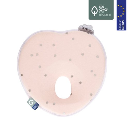 Podhlavníček LoveNest bol patentovaný a je vyrábaný v Portugalsku . Je špeciálne tvarovaný tak, aby vyhovoval tvaru lebky dojčaťa a zaisťoval rovnomerné rozloženie tlaku po hlavičke a zároveň umožňoval úplnú voľnosť pohybu.
