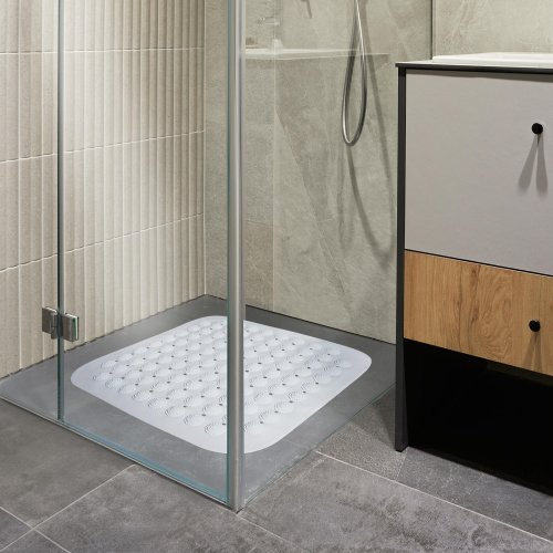 Podložka do sprchy 43,5 x 43,5 cm, gumová. rozmery: 43,5 x 43,5 cm matriál: PVC Protišmyková podložka do vane, ktorá zabráni náhodnému pošmyknutiu a pádu vo vani alebo v sprche.