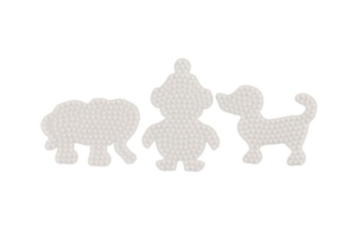 Pomôcka na vytváranie obrázkov zo zažehľovacích korálikov. Sada bielych plastových podložiek obsahuje slona, tučniaka a psíka. Vhodné od 5 rokov.