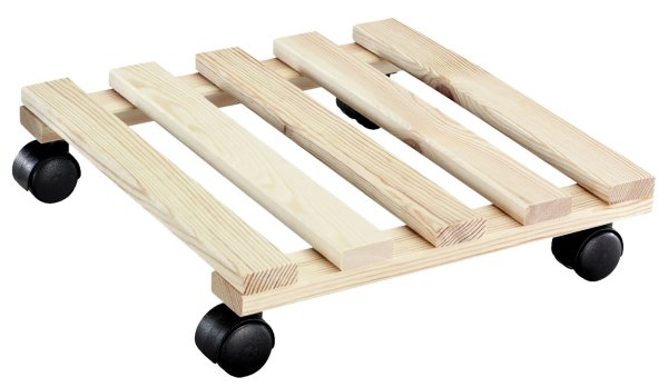 Táto podložka pod kvetináč je vyrobená z kvalitného borovicového dreva štvorcového tvaru. Vďaka otočným kolieskam uľahčuje manipuláciu s kvetináčom s nosnosťou do 100 kg.