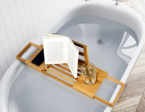 Užite si úžasne relaxačný kúpeľ s touto vysoko kvalitnou nastaviteľnou vaňovou doskou vyrobenou z udržateľného bambusového dreva. Vďaka nastaviteľnému dizajnu sa táto vaňová doska bez problémov prispôsobí každej vani. Obsahuje nastaviteľnú podložku pre knihy alebo tablety, držiak na telefón a zárezy na uloženie vášho obľúbeného nápoja. Univerzálna a ľahko sa umiestni na akýkoľvek okraj vane. Pevné prevedenie a protišmykové. Každá položka je samostatne zabalená.Materiál : BambusDĺžka: 50 cmVýška: 4 cm Šírka: 18 cm