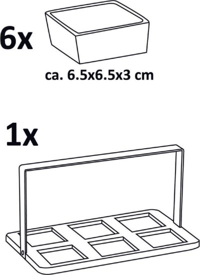 • Rozmer jednej misky: 6,5 x 6,5 x 3 cm