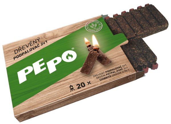 Drevený podpaľovač v tvare odlomiteľných dielikov obsahuje iba lisované drevené piliny a parafín. Zaujímavá alternatíva ku klasickým pevným alebo tekutým podpaľovačom. Jeho použitie je ľahké, rýchle a bezpečné. Horí 15 minút. Je vhodný nielen na použitie v otvorených ohniskách, krboch, griloch a kachliach, ale aj na použitie v interiéri. Je určený na 20 podpalov.