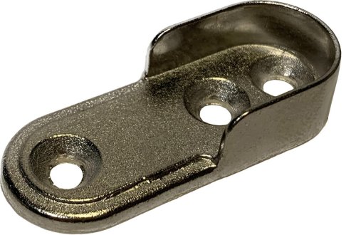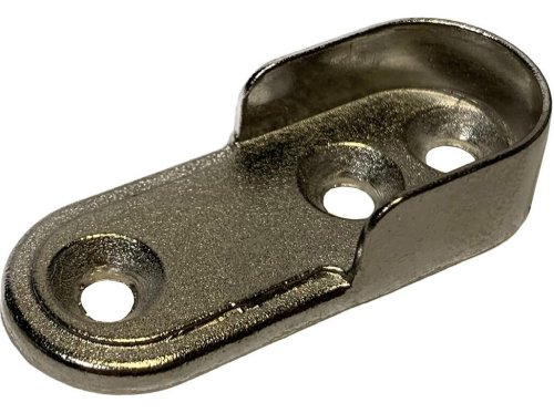 Kovová podpierka oválnej šatníkovej tyče na priskrutkovanie, dodávaná bez skrutiek na uchytenie.