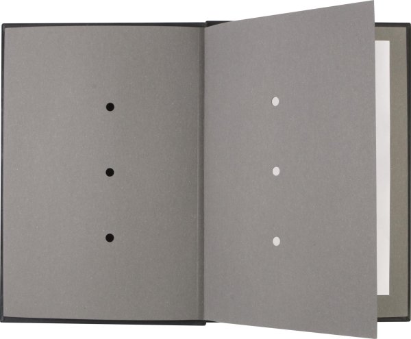 Okraje listov sú chránené plátnom, vo vnútri sa nachádza kartón s 3 otvormi na strede listu