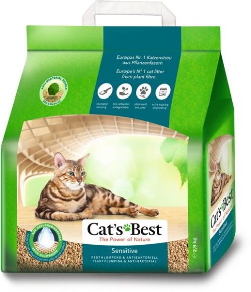 Silne hrudkujúca drevitá podstielka Cat's Best Sensitive je obzvlášť vhodná pre mačky s citlivou pokožkou. Jemnozrnná drevná hmota je šetrná ku mačacím labkám a doplnená zelenými perličkami s prirodzeným antibakteriálnym účinkom. Podstielka má vynikajúcu savosť (absorbuje tekutinu až v osemnásobku svojho objemu) a vďaka tomu je úspornejšia ako bežná podstielka: v toalete vydrží 6–8 týždňov bez nutnosti kompletnej výmeny. Vláknitý materiál skvele pohlcuje pachy a má príjemnú vôňu aj bez umelých prísad. Steliva Cat's Best sú plne biologicky odbúrateľné, takže ich môžete vyhodiť aj na kompost alebo spláchnuť do záchodu (hrudky sa po vhodení do vody ihneď rozpustia). Vyrábajú sa z druhotných produktov drevárskej výroby v udržateľne obhospodarovaných lesoch (certifikát PEFC ), Hlavné prednosti podstielky: