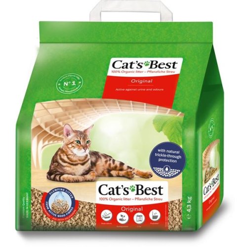 Hrudkujúca drevitá podstielka Cat's Best Original má výrazne vyššiu úžitkovosť ako bežné podstielky a vďaka tomu je aj úspornejšia: v toalete vydrží 5–7 týždňov bez nutnosti kompletnej výmeny. Peletky lisované z najjemnejších drevných vlákien absorbujú tekutinu až v sedemnásobku svojho objemu, skvele pohlcujú pachy a príjemne vonia aj bez umelých prísad. Steliva Cat's Best sú plne biologicky odbúrateľné, takže ich môžete vyhodiť aj na kompost alebo spláchnuť do WC (hrudky sa po vhodení do vody ihneď rozpustia). Vyrábajú sa z druhotných produktov drevárskej výroby v udržateľne obhospodarovaných lesoch (certifikát PEFC ), Hlavné prednosti podstielky: