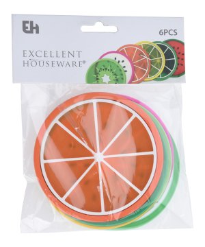 priemer: 9 cm materiál: silikón mix motívov: limetka, citrón, pomaranč, kivi, vodný melón, dračie ovocie balenie: 6 ks