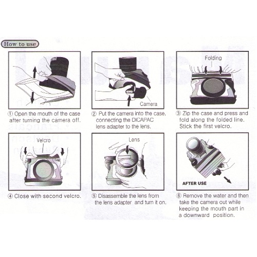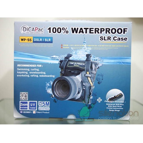Mäkké podvodné púzdro DiCAPac WP-S5 je vhodné pre väčšie SLR a DSLR fotoaparáty s nasadeným objektívom s dĺžkou 50 - 95 mm. Je ideálny na plávanie, surfovanie, kayaking, snowboarding, kúpanie, rafting, wakeboarding. Dvojité zatváranie zabraňuje vniknutiu prachu, piesku, vody a snehu. Puzdro je vodotesné až do hĺbky 5 m.